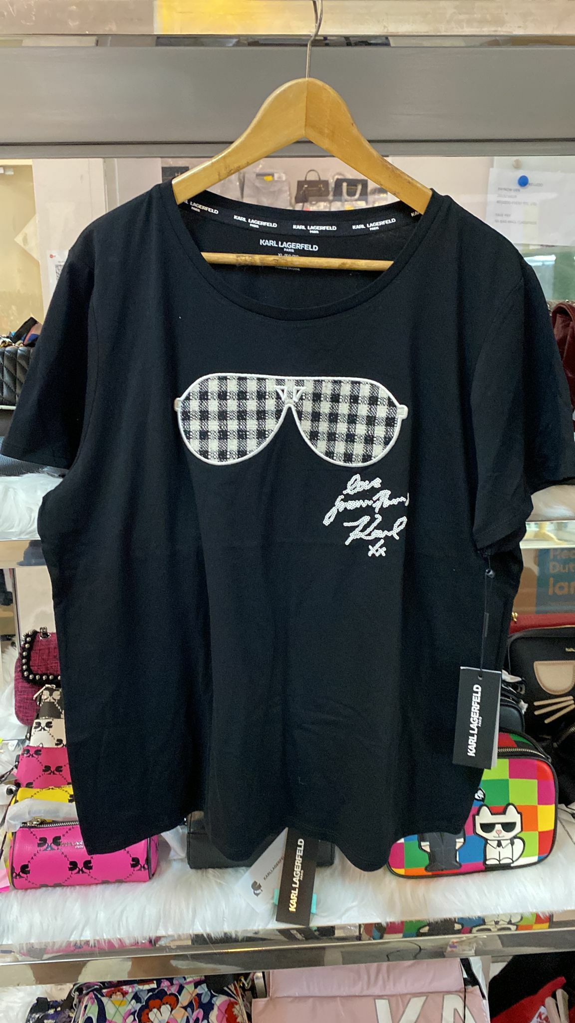 [S] KARL LAGERFELD BOUCLE SUNGLASS LOGO TEE,BLACK/WHITE, L2WHA032-BLW (SKL154)